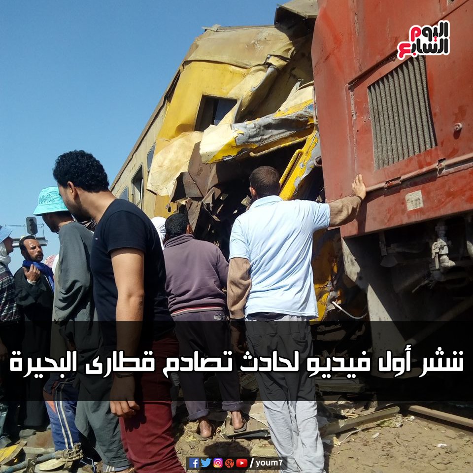 تداول رواد موقع التواصل الاجتماعى “فيس يوك”، أول فيديو لحادث انفصال عربتين من قطار ركاب، واصطدامها بقطار بضائع فى البحيرة، والذى أسفر عن وقوع وفيات وعدد من الإصابات.