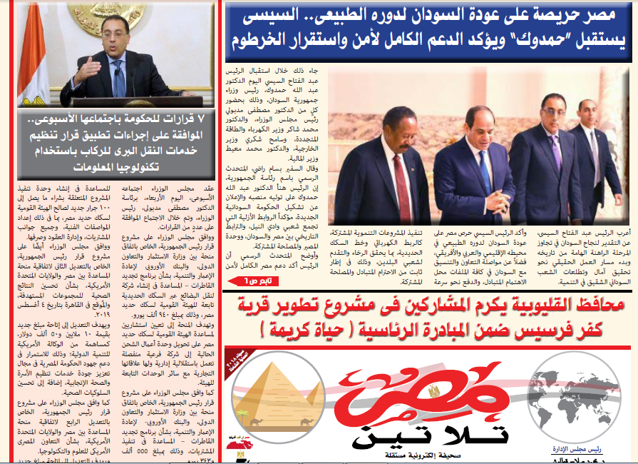تقدم صحيفة مصر تلاتين عدد اسبوعي يصدر عن الصحيفة كل يوم خميس نستعرض فيه ونوثق أهم أحداث الاسبوع على المستوى المحلي والعالمي .