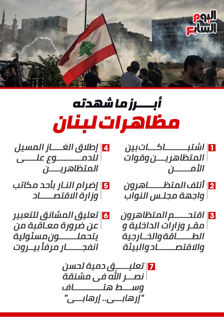 إنفوجراف.. أبرز ما شهدته مظاهرات لبنان