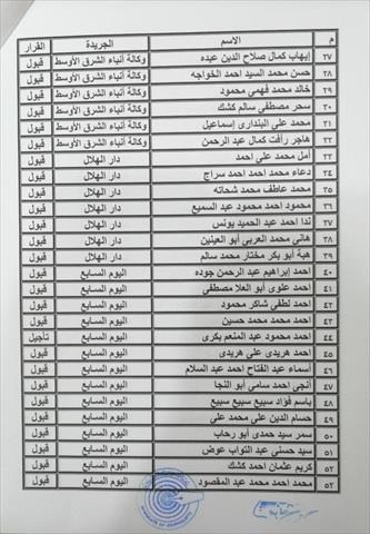 أعلنت نقابة الصحفيين نتيجة قيد جدول المشتغلين للزملاء الذين تقدموا للنقل بالجدول بتاريخ 23 فبراير 2021.وفيما يلي الأسماء: