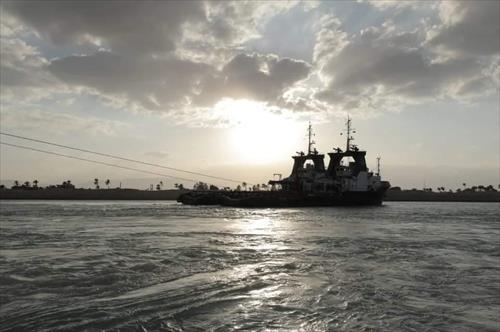 بالصور.. انضمام قاطرتين جديدتين لمناورات شد السفينة الجانحة بقناة السويس بعد اكتمال بنائهما