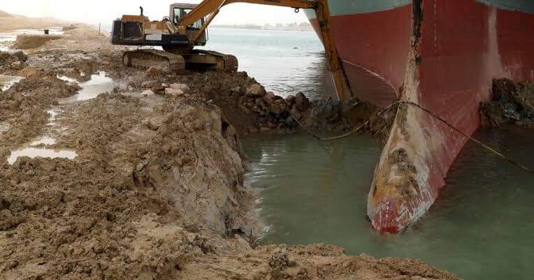 من الجنوح للتعويم.. 10 صورة توثق أزمة السفينة البنمية بقناة السويس