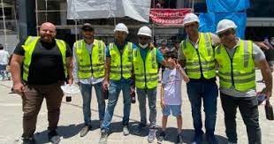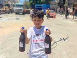 طفل فلسطينى يقدم العصائر للأطقم الهندسية المصرية فى غزة.. صور