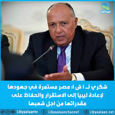 شكري: مصر مستمرة في جهودها لإعادة ليبيا إلى الاستقرار والحفاظ على مقدراتها من أجل شعبها