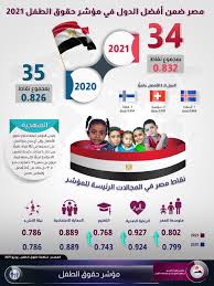ذكر مركز المعلومات ودعم اتخاذ القرار بمجلس الوزراء أن مصر تقدمت في مؤشر حقوق الطفل للعام الجاري 2021، لتحتل الترتيب الـ34 من أصل 182 دولة حول العالم بمجموع نقاط 0.832، مقارنةً بالترتيب الـ35 بمجموع نقاط 0.826 في 2020.