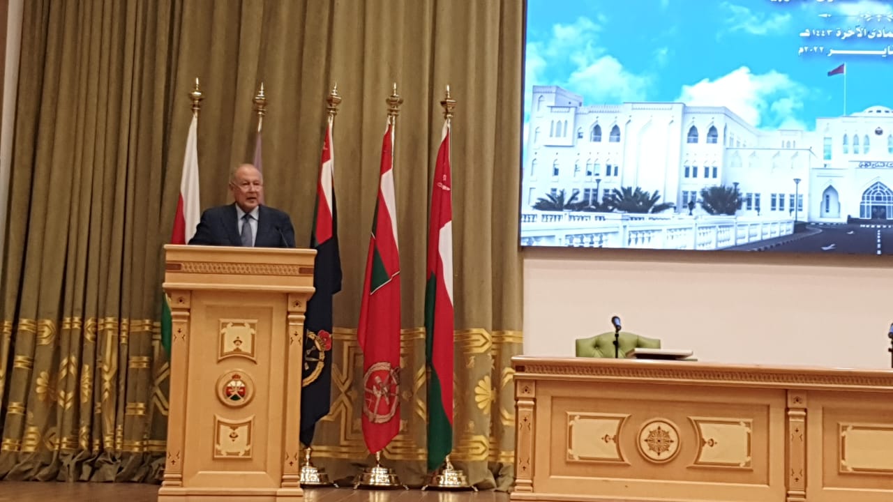 في ختام زيارته الي سلطنة عمان، قام السيد أحمد أبو الغيط، الأمين العام لجامعة الدول العربية بإلقاء محاضرة أمام كلية الدفاع الوطني بعنوان ” المتغيرات الإقليمية والدولية وأثرها على العمل العربي المشترك”، والتي يحضرها كبار الضباط في القوات المسلحة العمانية وكبار موظفي الدولة.