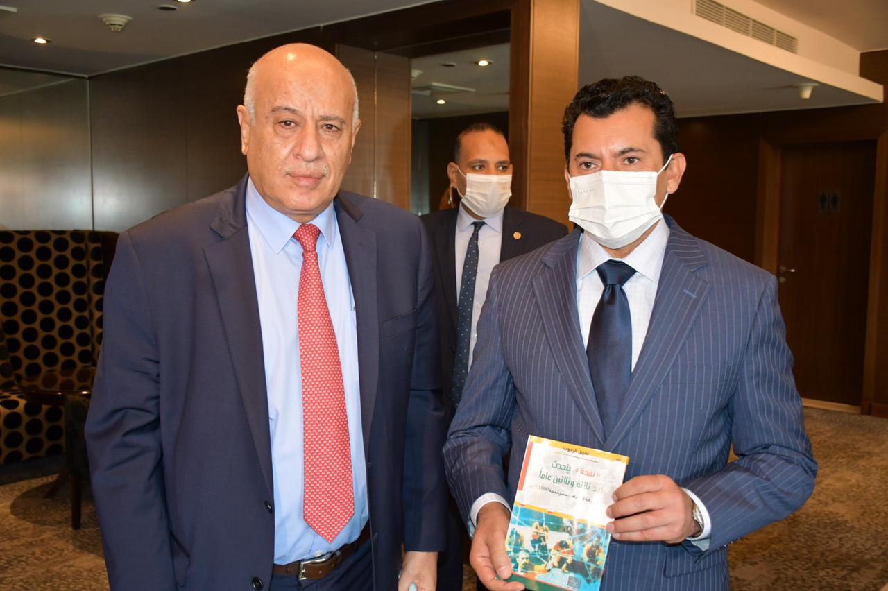 ألتقي الدكتور أشرف صبحي وزير الشباب والرياضة ورئيس المكتب التنفيذي لمجلس وزراء الشباب والرياضة العرب ،اليوم، وزير الشباب والرياضة الفلسطيني الفريق جبريل الرجوب رئيس المجلس الأعلى للشباب والرياضة ورئيس اللجنة الأولمبية الفلسطينية، ورئيس اتحاد كرة القدم بدولة فلسطين .