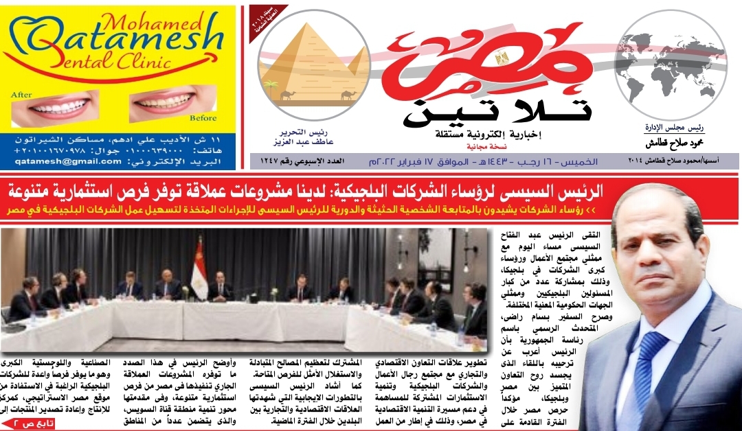 تقدم صحيفة مصر تلاتين عدد اسبوعي يصدر عن الصحيفة كل يوم خميس نستعرض فيه ونوثق أهم أحداث الاسبوع على المستوى المحلي والعالمي .