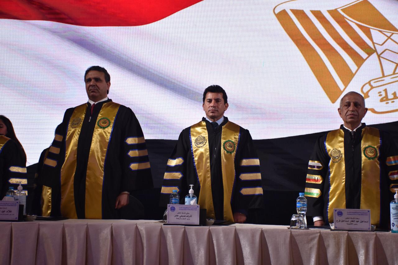 وزير الشباب يشهد احتفال الأكاديمية العربية بتخريج دفعة جديدة من كلية الدراسات العليا في الإدارة فرع مصر الجديدة