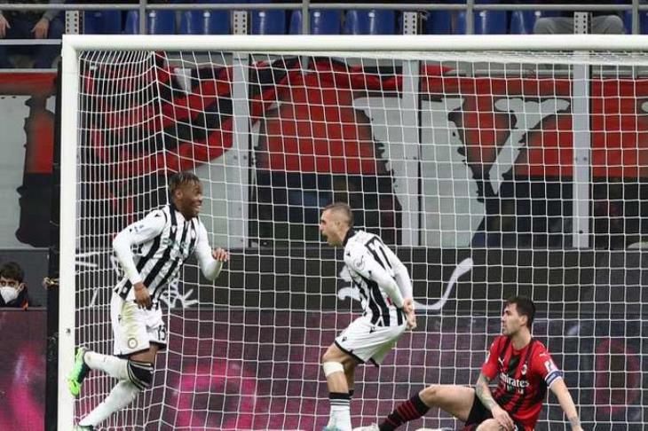 وتقدم ميلان بهدف سجله رافاييل لياو في الدقيقة 29 وتعادل أودينيزي عن طريق ينوما ديستني أودوجي في الدقيقة 66.