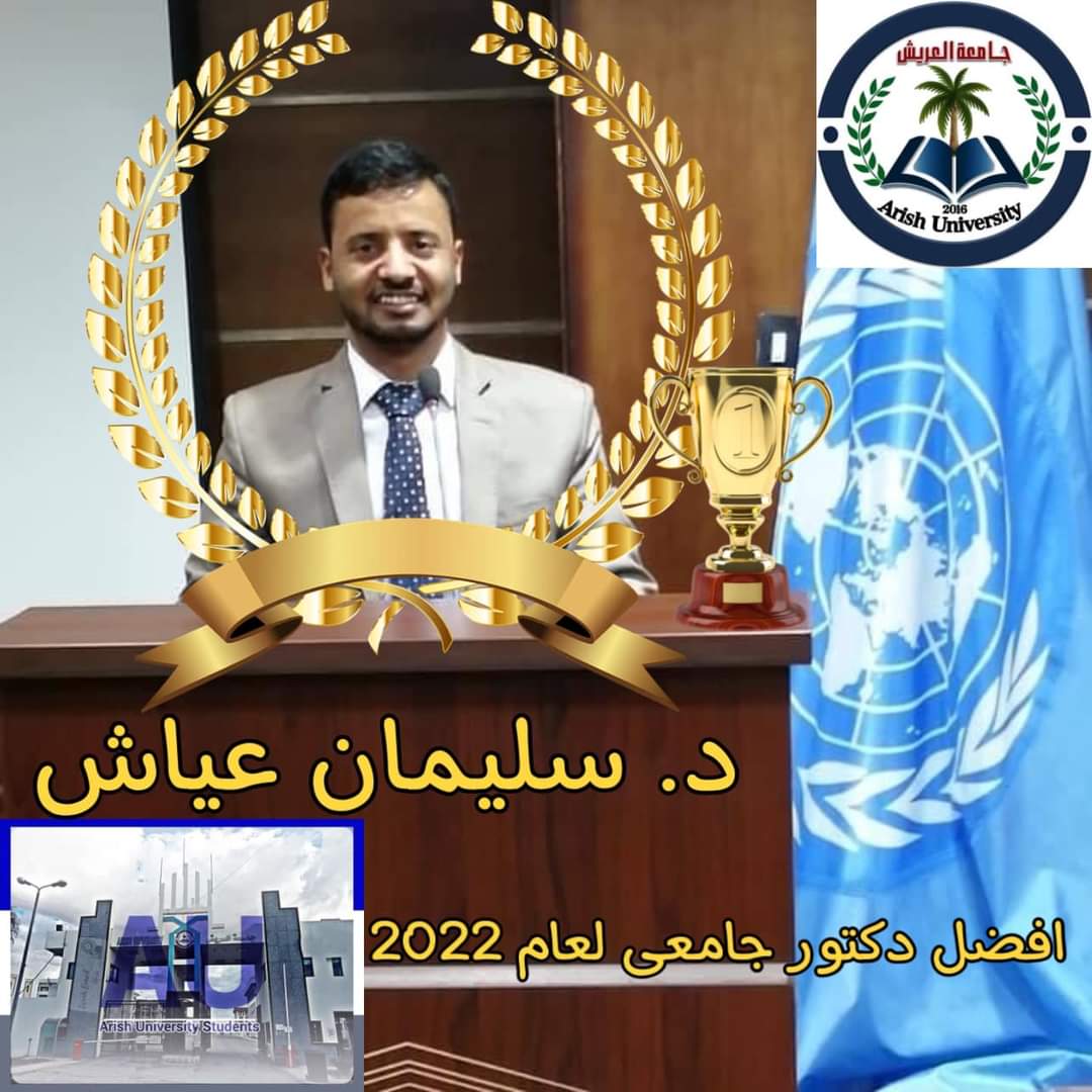 دكتور (عياش) يحصد المركز الاول فى مسابقة افضل دكتور جامعى لعام 2022 بجامعة العريش بشمال سيناء
