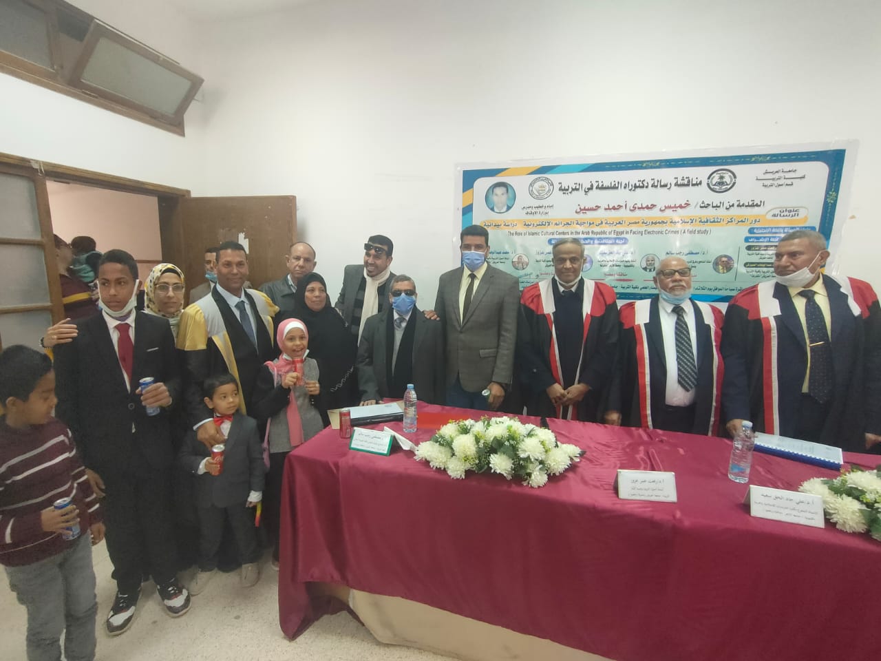 احتضنت قاعة السيمنار العلمي بكلية التربيه جامعة العريش اليوم مناقشة رسالة الدكتوراه للباحث خميس حمدي احمد حسين وذلك تحت عنوان دور المراكز الثقافيه الاسلاميه بجمهورية مصر العربيه في مواجهة الجرائم الالكترونيه _دراسه ميدانيه