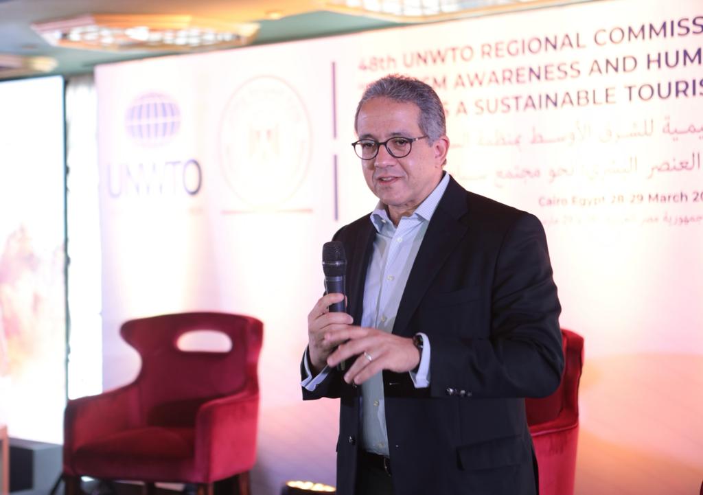 ويُعقد على مدار اليوم مؤتمر “الوعي السياحي وبناء القدرات البشرية: نحو مجتمع سياحي مستدام” في إطار أعمال هذا الاجتماع، والذي استهله الدكتور خالد العناني، بالترحيب بالضيوف، والتأكيد على أنه نظراً لأهمية العنصر البشري في قطاع السياحة وضرورة تأهيل وتعزيز مهاراته وقدراته، ورفع الوعي السياحي لدى الجميع، تم اختيار هذا الموضوع ليكون محوراً رئيسياً يتم طرحه ومناقشته اليوم خلال جلسات المؤتمر المختلفة، بما يأتي اتساقاً مع استراتيجية وزارة السياحة والآثار للتنمية المستدامة 2030.