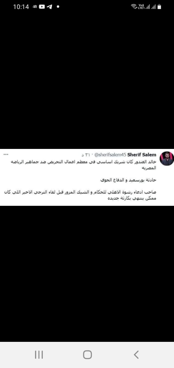 وكانت إدارة النادي الأهلي قد قررت تقديم شكوى صباح غدٍ إلى المجلس الأعلى لتنظيم الإعلام ضد الإعلامي خالد الغندور، وما يقوم به من تدوينات عبر حسابه الرسمي على «الفيسبوك»، كلها غير حقيقية، تهدف إلى تحريض جماهير الرجاء المغربي ضد فريق الأهلي، الذي سوف يتوجه إلى المغرب صباح غدٍ لخوض مباراة العودة في دور الثمانية لدوري الأبطال، والمحدد لها الجمعة المقبل بمركب محمد الخامس.
