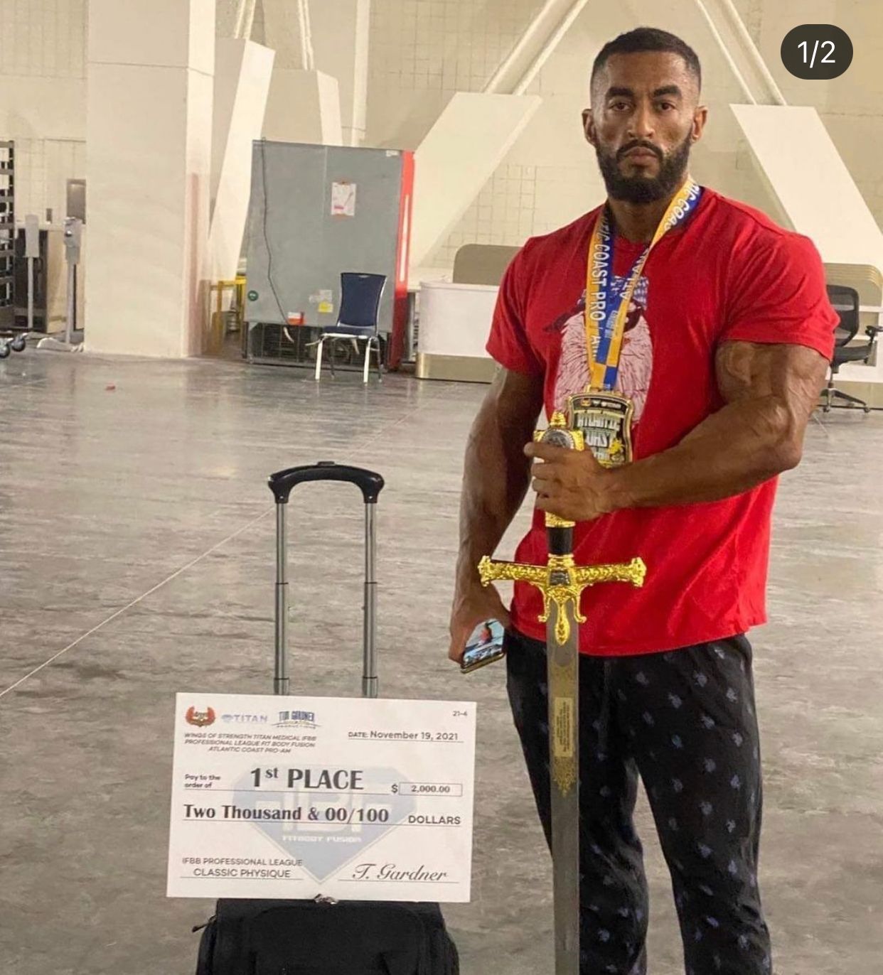 وأضاف” الصقر الأسود ” اتلانتيك كوست برو، هي البطولة التي حصلت عليها بالمركز الاول كانت المؤهلة لبطولة مستر أولمبيا للمحترفين لعام ٢٠٢٢ المقبلة والمقرر إقامتها في شهر ديسمبر القادم، والتي سوف يشارك فيها بطل الابطال لكمال الأجسام “بيج رامي” في فئة كمال الأجسام الوزن المفتوح بينما انا سوف أشارك في الكلاسيك فيزيك وزن ٩٥كيلو.