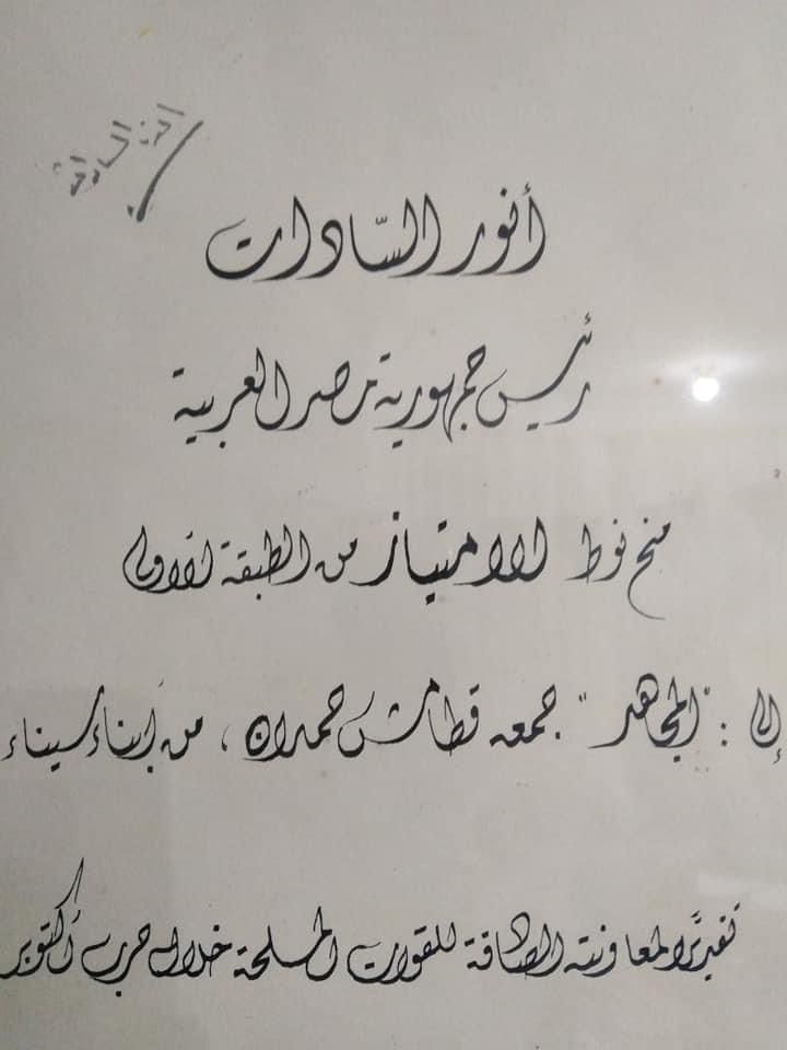 كل عبارات الثناء والمدح تفقد قيمتها إن لم تكن في توقيتها الصحيح. ومن هنا نبدأ القصه انها قصه المجاهد البطل /جمعه قطامش حمدان احد ابطال حرب اكتوبر عندما قدم دوراً بطولياً وعملاً رائعاً من اجل الوطن وهذا واجبه عندما كان يقود (خلية اللاسلكي) عرفت بهذا الاسم في زمنها واللتي كانت تعمل خلف خطوط العدو حيث كانت تنقل المعلومات الاستخباراتيه عن تحركات العدو الاسرائيلي في سيناء الي القياده العامه للقوات المسلحه في القاهره وبعد القبض عليه حُكم هو وزملائه بخمس عشر عاماً وبعد عمليه تبادل اسري بين القوات المسلحة وقوات العدو تم بموجبها الافراج عن ١- المجاهد/جمعه قطامش حمدان