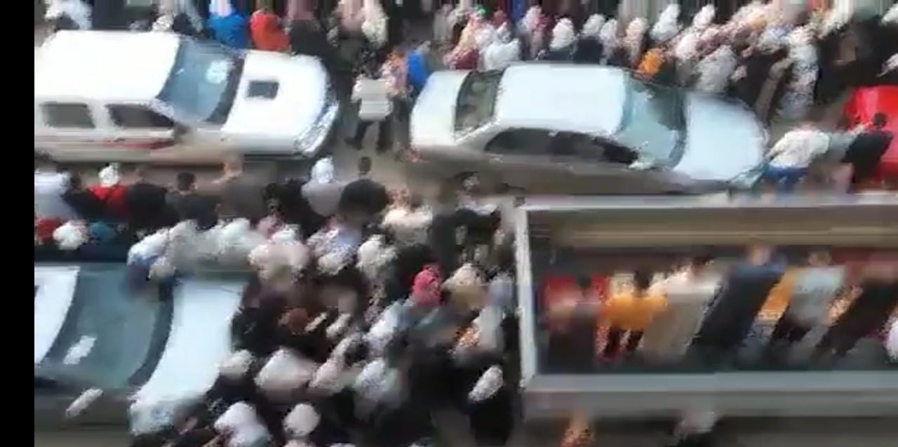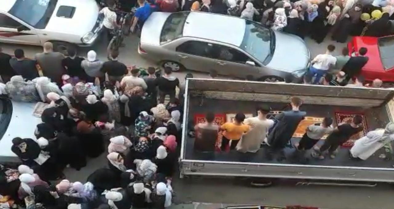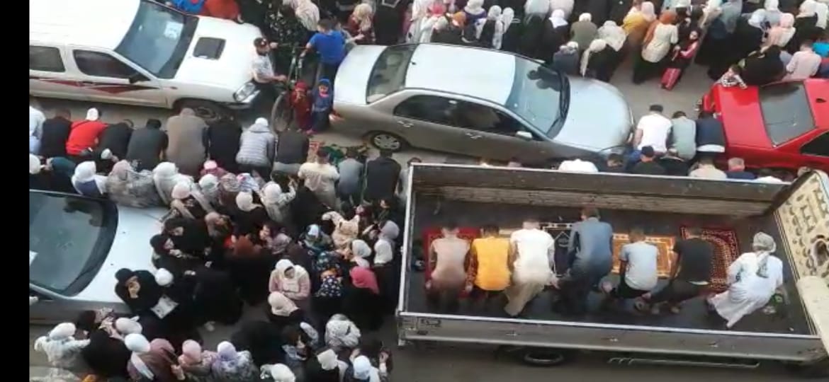 بالصور … تزاحم المواطنين اثناء صلاة العيد بمسجد النصر بالعريش وافترشو الاسفلت واعلى سيارات النقل وبين السيارات بسبب قلة عدد ساحات الصلاة
