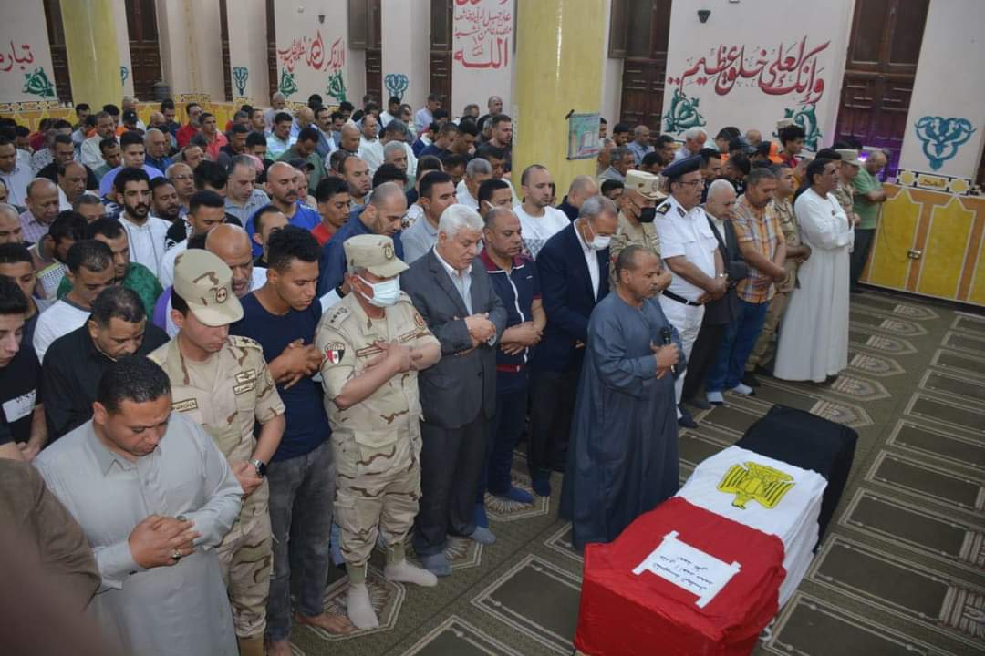 محافظ القليوبيه يتقدم جنازة شهيد الواجب من القوات المسلحة بقرية سرياقوس بمدينة الخانكه إثر الهجوم الأرهابي الغاشم