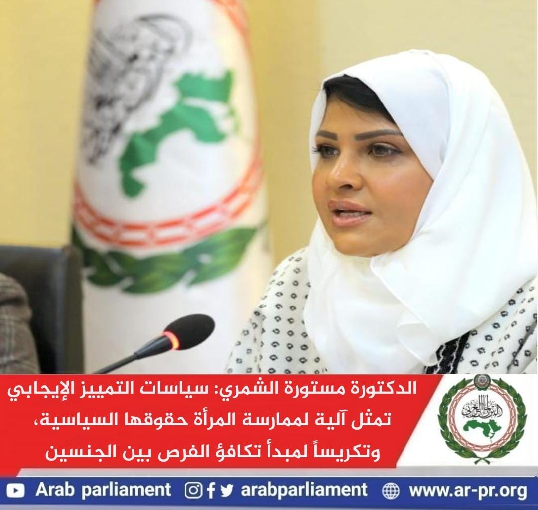 أكدت الدكتورة مستورة الشمري رئيسة لجنة الشؤون الاجتماعية والتربوية والثقافية والمرأة والشباب بالبرلمان العربي أن “سياسات التمييز الإيجابي” تضمن الحد الأدنى من ممارسة المرأة العربية لحقوقها السياسية، كما تكرس مبدأ تكافؤ الفرص بين الجنسين على أرض الواقع.