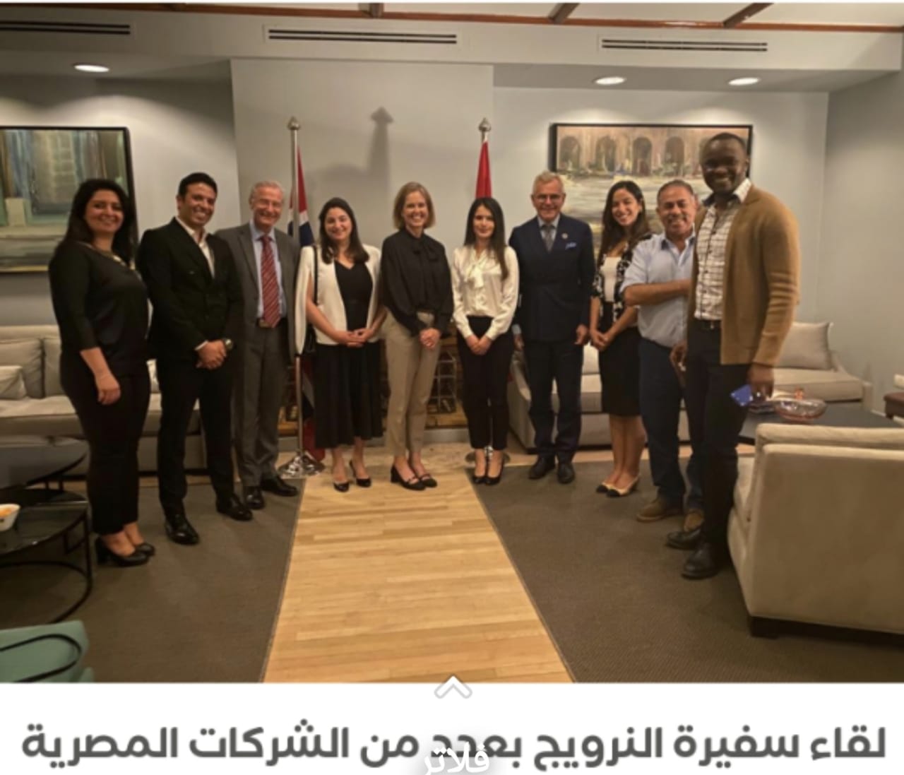 شارك المهندس المهندس محمد عاشور رئيس مجلس إدارة مجموعة شركات الصناعات الذكية للورق «اس جي اتش انفيستمنت ) بدعوة خاصة من معالي سفيرة النرويج في مصر هيلدا كليمتسدال وذلك بحضور مجموعة من كبار رجال الأعمال وأصحاب الشركات المصرية والنرويجية وممثلي البنك الأوروبي لإعادة الإعمار لمناقشة الاهتمامات المشتركة. و ناقش اللقاء توجهات النرويج في الاستثمار في مجالات الطاقة النظيفة، وتطرق الحوار للحديث على الاهتمامات المصرية في إنتاج الهيدروجين الأخضر خاصة مع قرب انعقاد مؤتمر المناخ في مصر 2022.