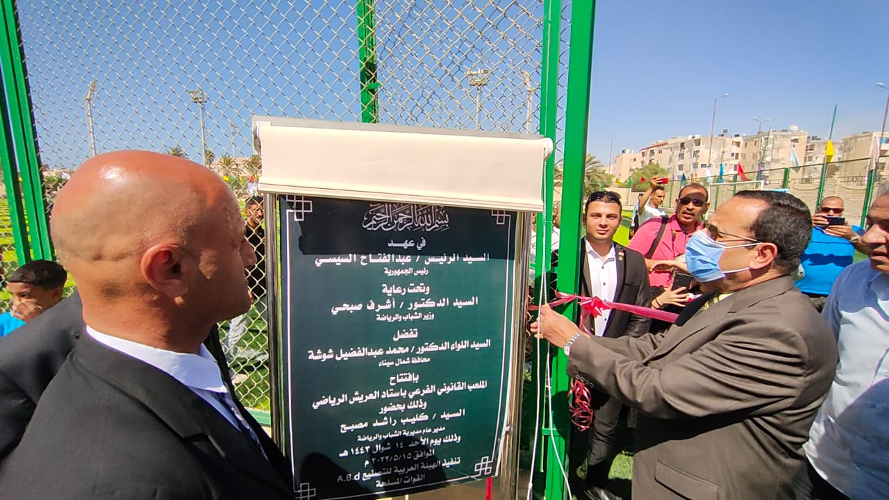 افتتح اليوم الدكتور محمد عبد الفضيل شوشة محافظ شمال سيناء .. يرافقه كليب راشد مدير عام الشباب والرياضة .. الملعب الفرعى الجديد باستاد العريش الرياضى .. كما شهد النهائي ختام دورى مراكز الشباب الذى أقيم بالملعب .
