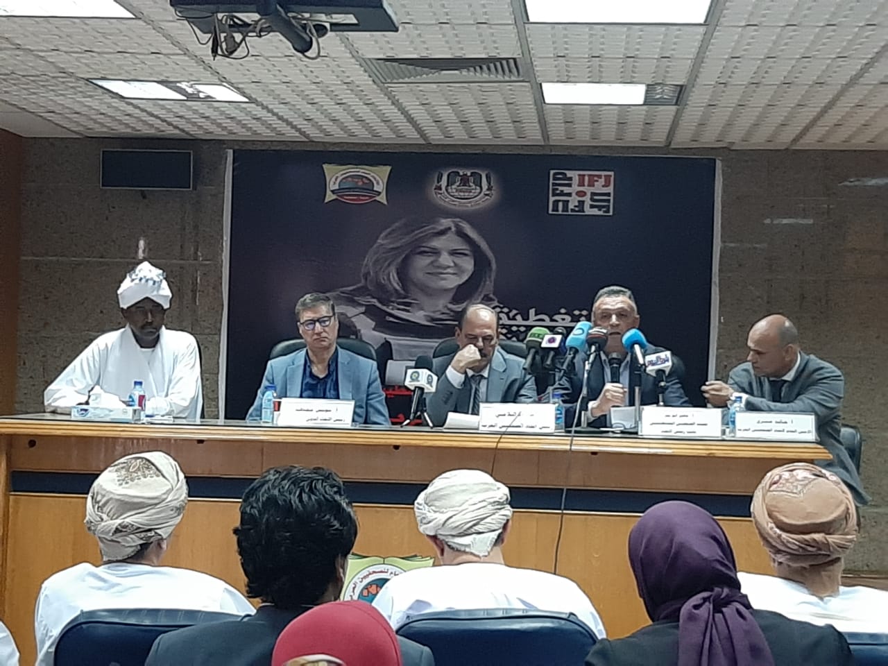 جاء ذلك خلال مؤتمر صحفي عقده اتحاد الصحفيين العرب، ، بمقر الاتحاد العام للصحفيين العرب، بحضور مؤيد اللامي رئيس اتحاد الصحفيين العرب ويونس مجاهد رئيس الاتحاد الدولي للصحفيين وناصر أبو بكر نقيب الصحفيين الفلسطينيين.
