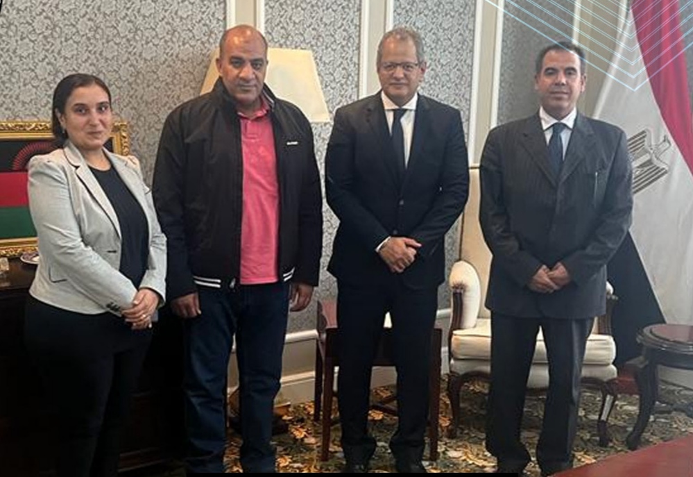 والتقى مدير العلاقات العامة باتحاد الكرة، السيد محمد الشريف سفير مصر في مالاوي، والسيدة رانيا البحبوحي مستشار السفارة، والسيد محمد جودة علي الملحق الاداري بالسفارة، لمناقشة كافة الترتيبات والتجهيزات الخاصة بالمباراة لتوفير سبل الراحة للمنتخب الوطني قبل المباراة المرتقبة.