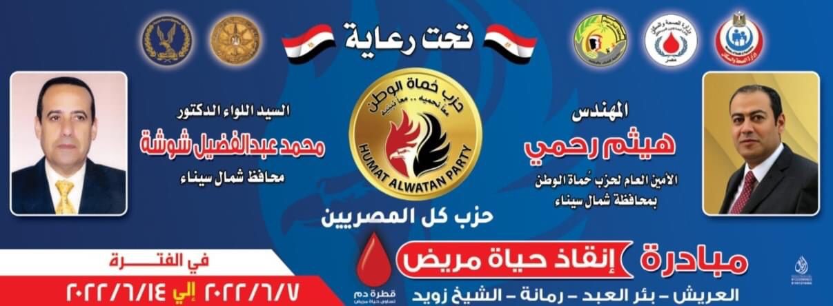 أطلق حزب حماة الوطن أمانة شمال سيناء مبادرة ” إنقاذ حياة مريض .. للتبرع بالدم ”