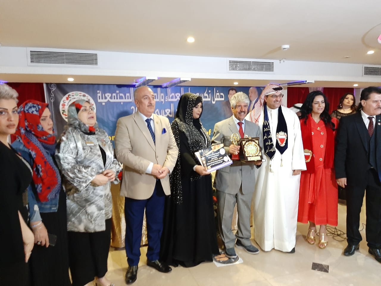 الدكتور مصطفى السيد الأمين العام للمؤسسة الخيرية الملكية تقديراً لجهوده الإنسانية في خدمة الأيتام والأرامل وتقديم العمل الخيري داخل وخارج مملكة البحرين بحضور د عادل المشعل الفنان التشكيلي بدوله الكويت ود عادل الحوسني رئيس مجلس الحوسني بمملكه البحرين ود هاله جمال رئيس جمعيه عطاء للمسؤولية المجتمعية للأفراد بمملكه البحرين ود شفيقه العامري رئيس نادي صاحبات الأعمال في دوله الإمارات والأمين العام لمجلس الشباب العربي للتنمية المتكاملة