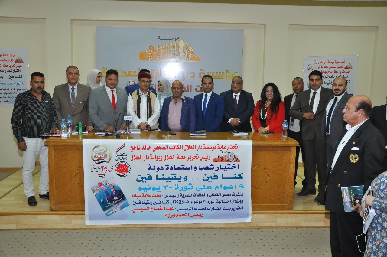 هذا الكتاب الذي اعده المهندس محمد سلامه عياده عضو المكتب الفني المركزي وعضو لجنه الشباب بمجلس القبائل والعائلات المصريه وسرد بداخله كل انجازات الرئيس السيسي في ٩ اعوام من توليه الحكم فانا ثوره ال 30 من يونيو هي ثوره اراده شعب حيث قال المهندس محمد سلامه عياده ان مع الاحتفال بذكرى ثوره 30 من يونيو يعود الى اذهان المصريين الملحمه الخالده للحفاظ على هويه الوطن التي غيرت مجرى التاريخ المصريه الحديث وخلقت مسار جديد للعمل الوطني بعد الاطاحه بحكم الاخوان المستبد لتنطلق بعدها ثوره في البناء والتنميه على كافه المستويات يدعمها شعب واعي يدرك قيمه الاصطفاف الوطني لمجابهه التحديات.