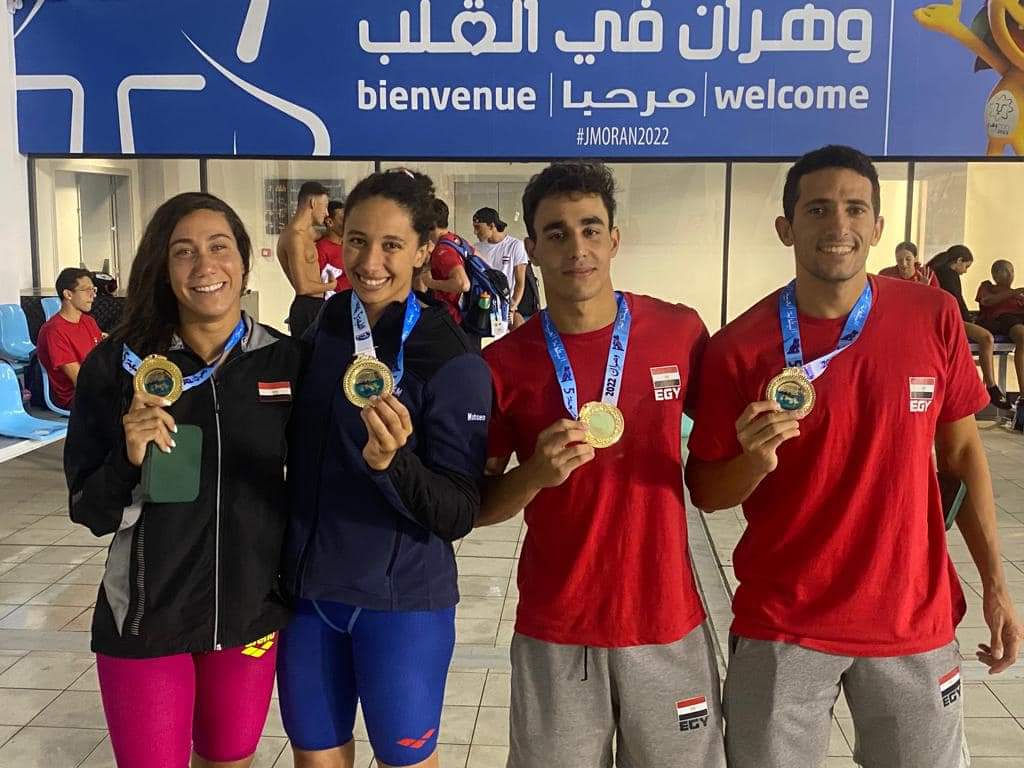 فاز بالميداليات السبع الذهبية مروان القماش فى سباق 1500متر حرة “رجال”، ونادين كريم فى نفس السباق للانسات ، وفريدة عثمان فى سباق 50متر حرة ، وحلا دياب فى سباق 200 متر فراشة ، ومحمد هانى فى سباق 200 متر ظهر “رجال”، محققا رقما مصريا وعربيا جديدا بزمن قدره 2 ،00 ،48 ثانية ، وسميحة محسن فى نفس السباق للانسات ، وحصل المنتخب المصرى على الميدالية الذهبية السابعة والأخيرة فى هذا اليوم ، فى منافسات 4*100 متنوع مختلط .