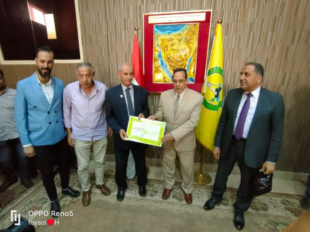 وقام المحافظ بمنح مدير الشئون القانونية شهادة تقدير، تقديرا لجهوده خلال فترة عمله بالمحافظة.