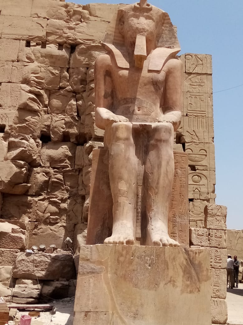 الإنتهاء من ترميم تمثال الملك تحتمس الثاني بالواجهة الجنوبية للصرح الثامن بمعابد الكرنك