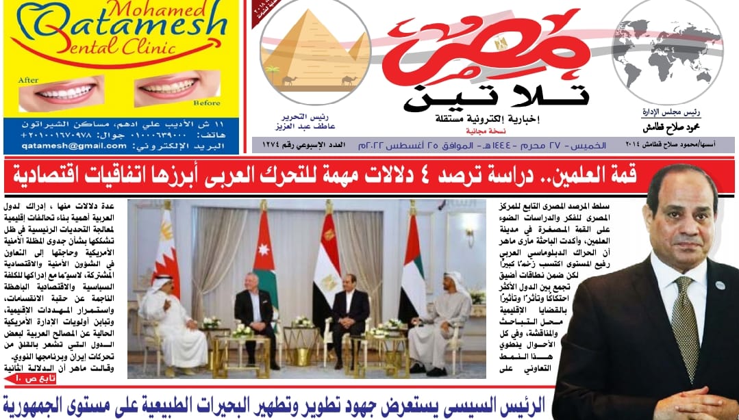 تقدم صحيفة مصر تلاتين عدد اسبوعي يصدر عن الصحيفة كل يوم خميس نستعرض فيه ونوثق أهم أحداث الاسبوع على المستوى المحلي والعالمي .