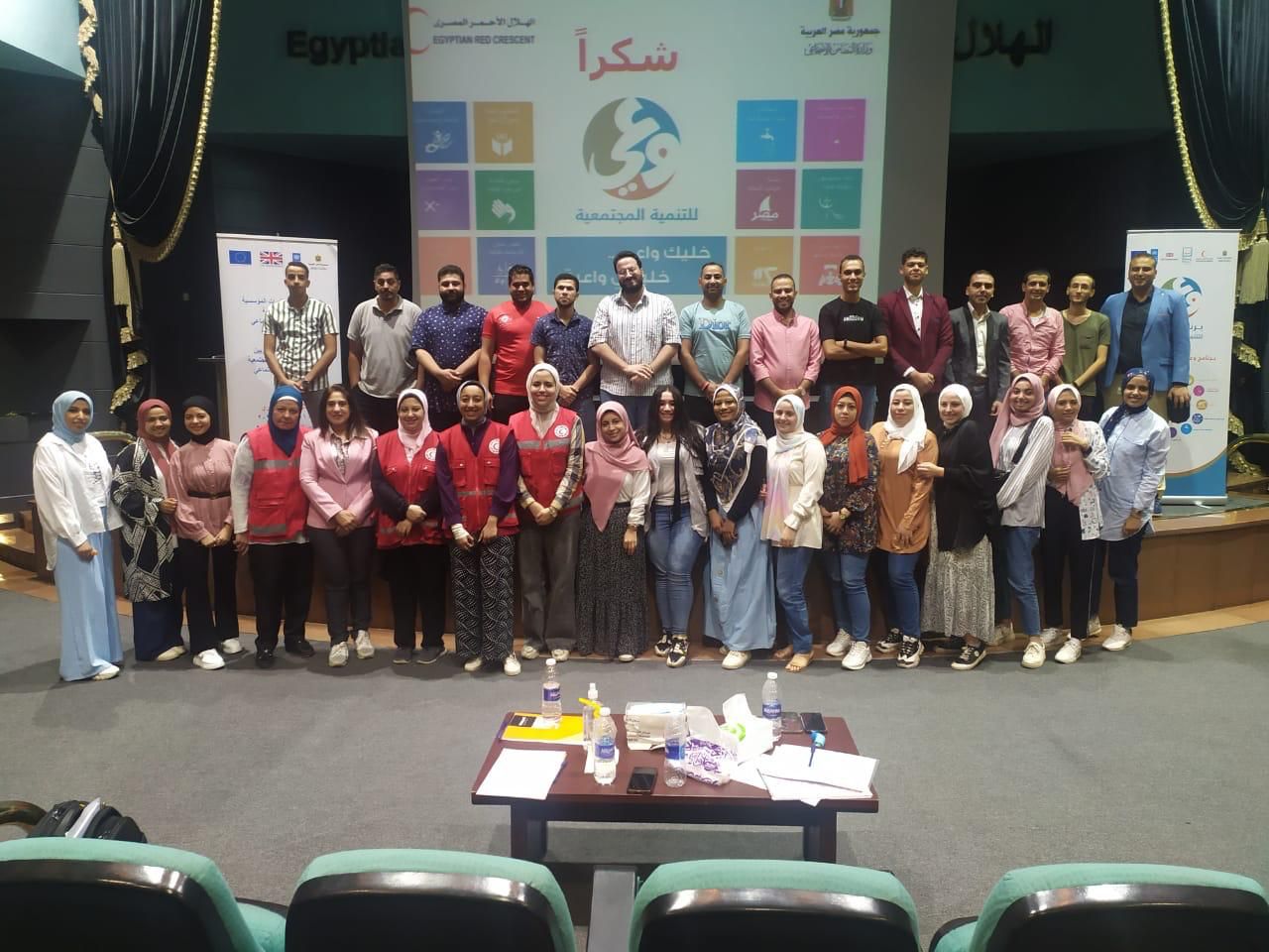 اختتمت فعاليات اللقاء التدريبي الثاني للهلال الاحمر المصري والخاص بتدريب المدربين لبرنامج وعي للتنمية المجتمعية في محافظات شمال سيناء وجنوب سيناء ومرسى مطروح يأتي هذا التدريب استكمالا للقاء التدريبي الاول والذي عقد في مطلع شهر اغسطس لتدريب المدربين المركزيين للبرنامج في محافظات القاهرة والجيزة والقليوبية بإجمالي عدد متدربين ٤٨ مدرب مركزي ضمن الخطة التنفيذية لإعداد مثقفين مجتمعين لنشر الوعي بالقضايا الصحية والاجتماعية لبرنامج واي. أقيمت التدريبات بالمركز العام للهلال الأحمر المصري بالقاهرة بحضور كلا من الدكتور مجدي حلمي مستشار وزارة التضامن الاجتماعي والدكتورة آمال زكي مستشار وزارة التضامن الاجتماعي و الدكتورة سوزان المنسي منسقة برنامج وعي بوزارة التضامن وكذلك المهندس أحمد شاهين منسق الاتصالات وتكنولوجيا المعلومات بوزارة التضامن الاجتماعي والدكتورة علا عمران مدير وحدة الصحة المجتمعية و برنامج وعي بالهلال الأحمر المصري وقام بالتدريب مجموعة من مدربي الهلال الأحمر حيث تناولت الموضوعات كيفية التثقيف المجتمعي بقضايا البرنامج والتواصل الفعال مع الفئات المستهدفة ووضع الخطط التنفيذية لأنشطة التوعية المجتمعية المختلفة وكيفية رصد وتقييم هذه الأنشطة باستخدام المنصة التفاعلية لوزارة التضامن الاجتماعي.