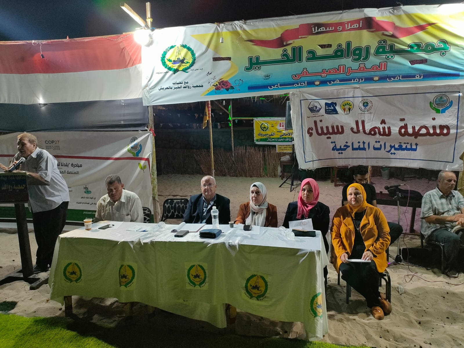 انطلق اليوم من المقر الصيفي لجمعية روافد الخير علي شاطيئ العريش فعاليات المهرجان التراثي المجتمعي للتعريف بأهداف منصة شمال سيناء للمناخ