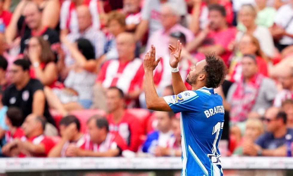 برايثوايت تلقى تمريرة طولية في الدقيقة 82، وأخطأ قلبي دفاع أتليتك بلباو دانييل فيفيان وجيراي ألفاريز في التعامل مع الكرة.