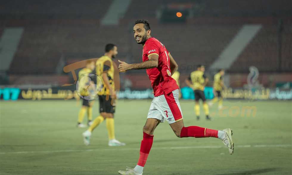 احتفال محمود عبد المنعم كهربا بهدفه لصالح الأهلي في شباك وادي دجلة