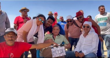 وظهر خلال الفيديو الفنان محمود حميدة وهو يمازح صناع العمل بسبب حرارة الجو وقت التصوير في الصحراء، ووجه حديثه للمخرج وائل إحسان قائلًا: “الأستاذ وائل إحساس عامل شيخ عرب لأنه بيصور فى الصحراء ولابس عمة، عشان أهله فى الإسماعيلية يشجعوه”.