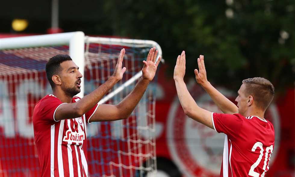 أحمد حسن كوكا يحتفل بهدف أولمبياكوس في سيسكا موسكو وديا