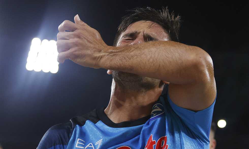 بالبكاء احتفل جيوفاني سيميوني لاعب نابولي بهدفه الرابع أمام ليفربول في المباراة التي انتهت بفوز نادي الجنوب بنتيجة 4-1.