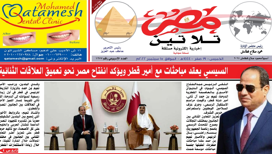 تقدم صحيفة مصر تلاتين عدد اسبوعي يصدر عن الصحيفة كل يوم خميس نستعرض فيه ونوثق أهم أحداث الاسبوع على المستوى المحلي والعالمي .