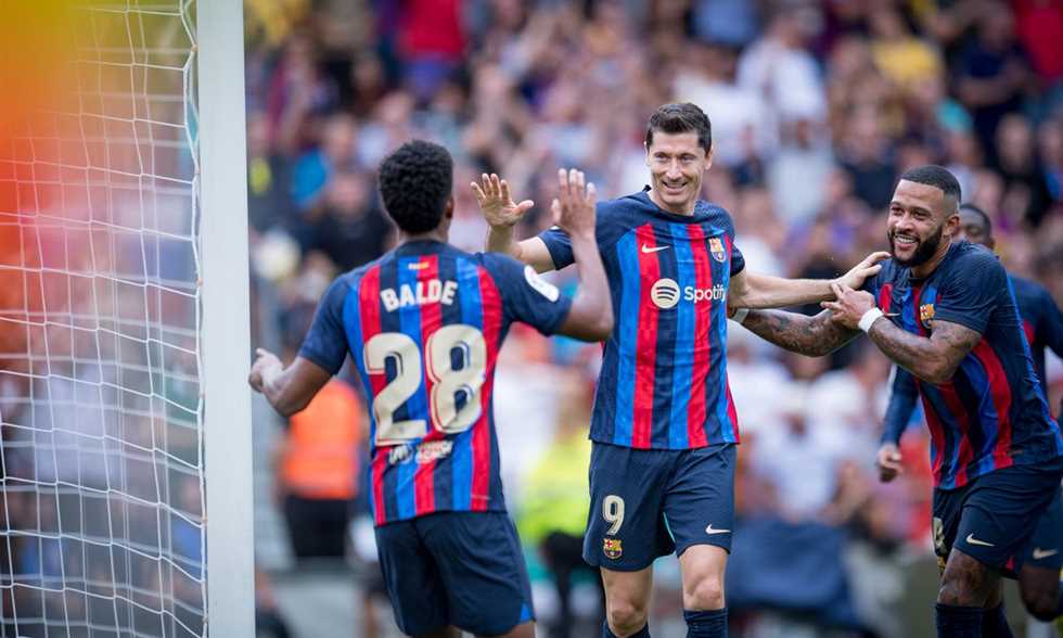 سجل للفريق الكتالوني روبرت ليفاندوفسكي “هدفين” في الدقيقتين 34 و48، وممفيس ديباي في الدقيقة 41.