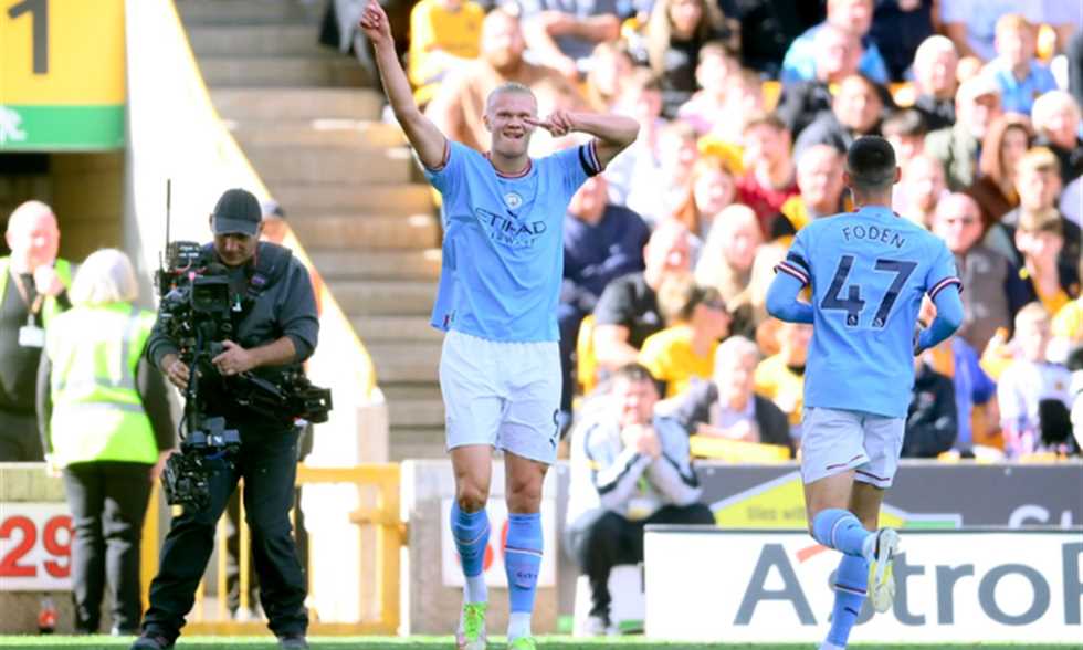 هالاند التاريخي وهدايا دي بروين ضمن أرقام فوز مانشستر سيتي على ولفرهامبتون