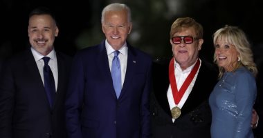 المغنى إلتون جون يذرف الدموع خلال تكريمه من الرئيس الأمريكى جو بايدن