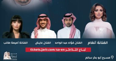 تحيى كل من النجمة أنغام، وأميمة طالب، والفنان فؤاد عبد الواحد والفنان عايض حفلاً غنائيًا، في السعودية ضمن حفلات معرض الرياض الدولى للكتاب، يوم السبت الموافق 8 أكتوبر الجارى.