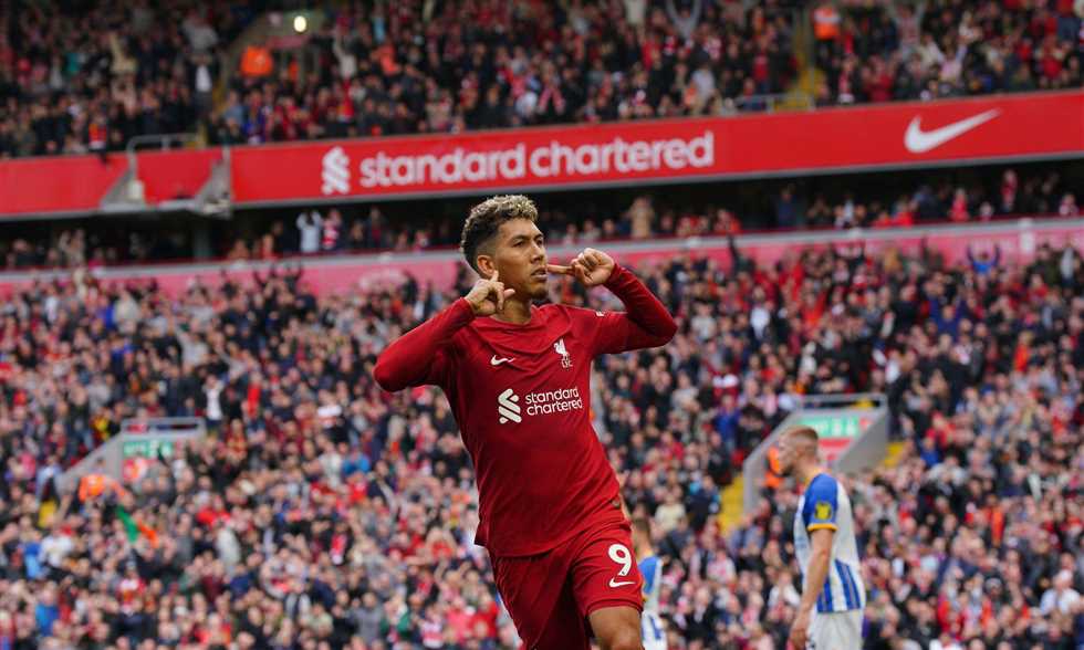 احتفال فريق ليفربول بهدف فيرمينو أمام برايتون