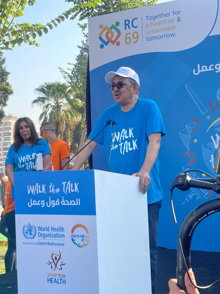 وشارك وفود اللجنة الإقليمية بقيادة وزراء الصحة، والمدير العام لمنظمة الصحة العالمية، والمدير الإقليمي لمنظمة الصحة العالمية، في وقت مبكر من صباح اليوم في فعالية “الصحة قولٌ وعمل” التي أقيمت في حديقة الطفل أمام المكتب الإقليمي لمنظمة الصحة العالمية لشرق المتوسط.