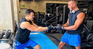 علاء الشربيني يشارك جمهوره صورة برفقه رامى رضوان من داخل الجيم