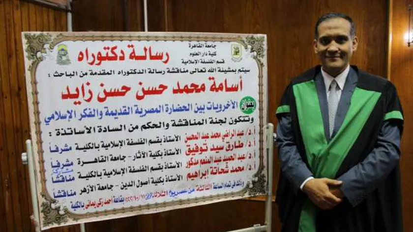 أسامة زايد يحصل على الدكتوراه بمرتبة الشرف الأولى في «فلسفة الحياة الآخرة»